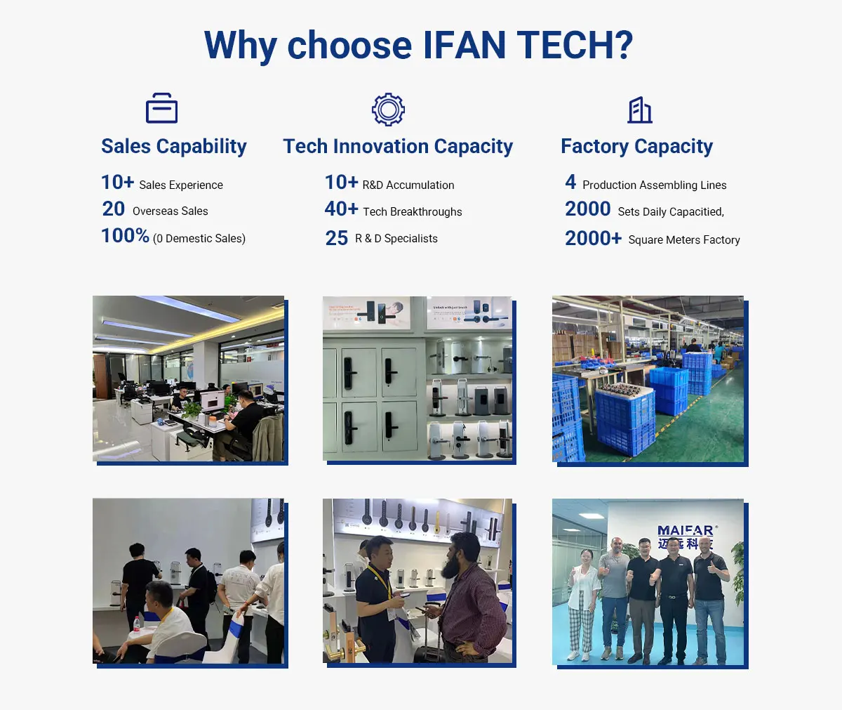 IFAN TECH was established in year 2019, We have our own R&Dand testing department, focusing on the research、development、production of smart home products like smart door locks,smart switches, smart night lights. We keep patents for all of our products, which are developed by ourselves.